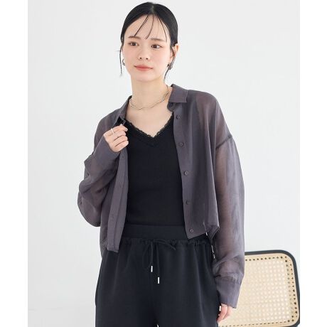 透け感とショート丈で叶う、軽やか美バランス軽やかなシアー素材が、コーディネートに抜け感とやわらかな印象をプラスしてくれる一枚です。ショート丈デザインがウエスト位置を高く見せ、自然とスタイルアップが叶います。さらりとした着心地で重たくならず、季節の変わり目にも快適に着用できます。シンプルなボトムスと合わせるだけでバランスよく決まり、パンツにもスカートにも相性抜群です。さっと羽織るだけで今らしい軽やかな着こなしが完成し、デイリーからお出かけまで幅広く活躍します。オンライン限定ならではの特別感も魅力のひとつです。透け感[あり]