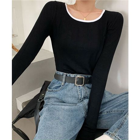 無地リンガーカットソー レディース トップス 長袖 タイト
