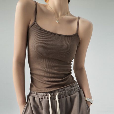 細かなリブ編みが身体のラインをきれいに見せるタンクトップです。
