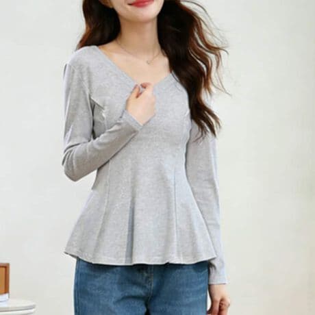 ウエストに切り替えが入ったペプラムデザインが特徴の長袖トップスです。