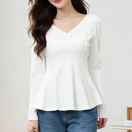 ウエストに切り替えが入ったペプラムデザインが特徴の長袖トップスです。