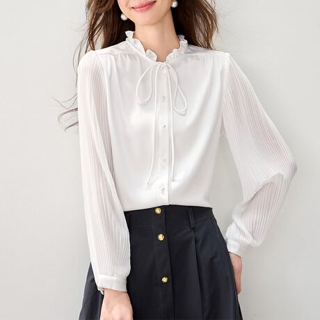フリル襟リボンタイプリーツ袖ブラウス