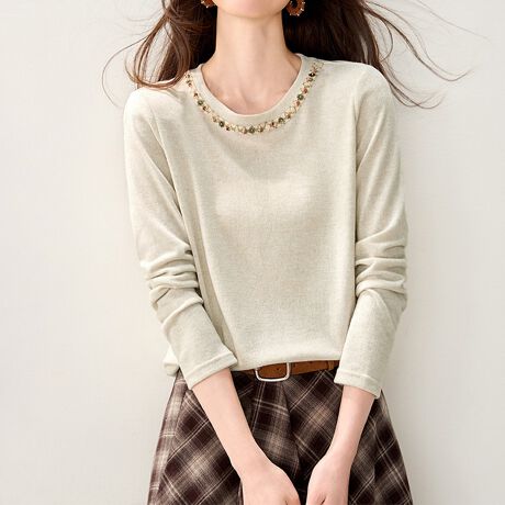 スカートにもパンツにも合わせやすく、春秋のきれいめコーデに活躍します。