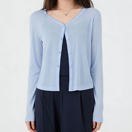 薄手で軽い着心地のため、季節の変わり目や冷房対策にも使いやすい一枚です。