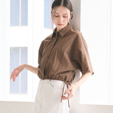 結んで楽しむ大人フェミニン。旬顔ギンガムチェックシャツ。