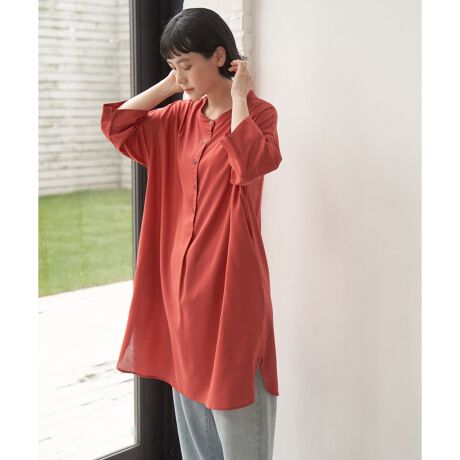 汗ばむ季節にも快適に着られる素材でゆったりとしたシルエットが印象的。