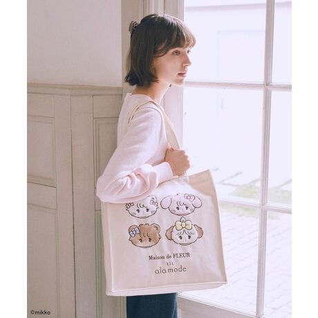 キャンバス生地に「Lil ala mode」の仲間たちをパッチワーク刺繍で表現したトートバッグ。