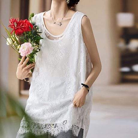 繊細なレースを贅沢に使用したノースリーブチュニック。