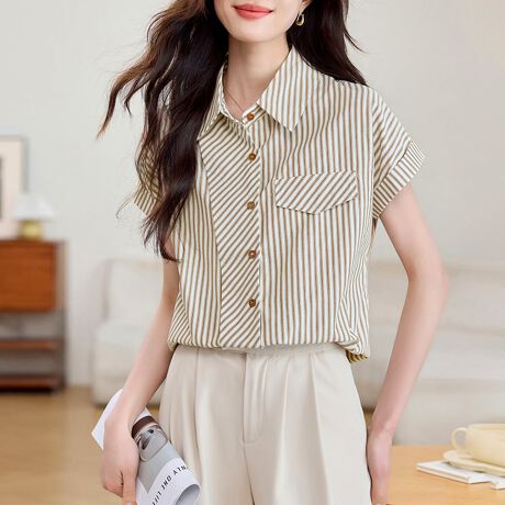 ストライプ柄が目を引く半袖シャツです。