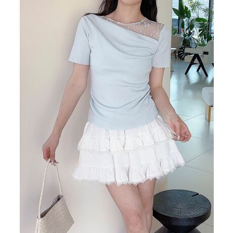 【Jasmine】レース切り替えアシメトリーデザインTシャツ