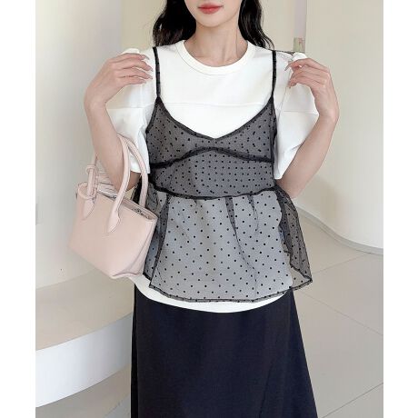 ドット柄xバックリボンが目を惹く、フェミニンなビスチェ。