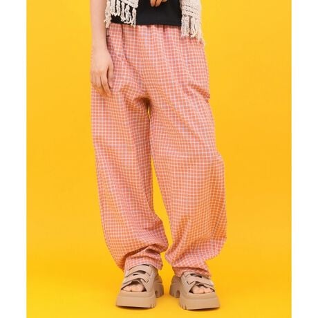 レトロなチェック柄が目を惹く、コクーンシルエットパンツ。
