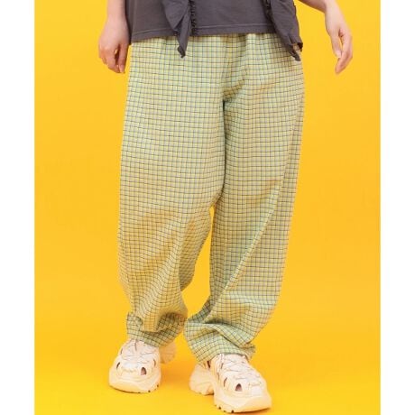 レトロなチェック柄が目を惹く、コクーンシルエットパンツ。