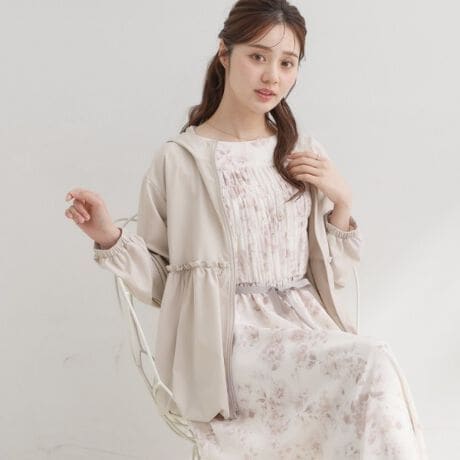 ウエスト切り替え位置にたっぷりと入ったギャザーが女性らしいふんわりとしたシルエットに。