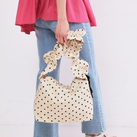 カジュアルなデニムスタイルに取り入れて、フリルハンドルで女性らしさをさりげなくアピール。