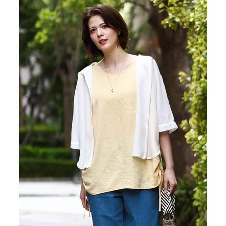 透けすぎないのでタンクトップなどのノースリーブインナーと合わせても安心して着られます。