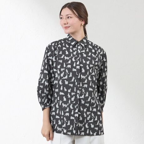 ・LIBERTY(リバティ)「Meow」柄を使用したチュニックブラウス