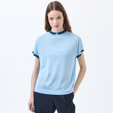 2015年登場以来、愛され続けているクレリックカラーニットは、首元の衿に見立てた切り替えが特徴。
