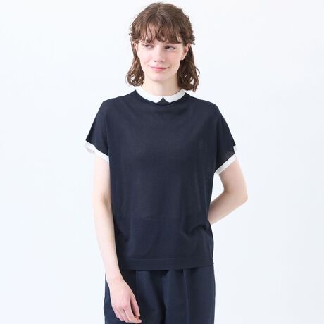 2015年登場以来、愛され続けているクレリックカラーニットは、首元の衿に見立てた切り替えが特徴。