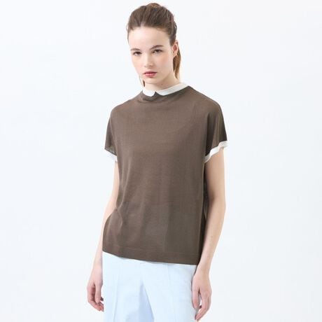 2015年登場以来、愛され続けているクレリックカラーニットは、首元の衿に見立てた切り替えが特徴。