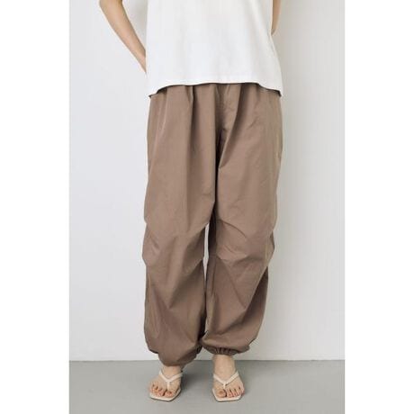 ■コットンパラシュートパンツ■ポイント立体的なコクーンシルエットで、穿くだけで今っぽいバランスが完成するパラシュートパンツ。■ディテール腰まわりにゆとりを持たせ、裾にかけて丸みのあるラインを描くコクーンシルエットが特徴。身体のラインを拾いにくく、リラックス感がありながらも洗練された印象に仕上げています。ウエストは程よくフィットする設計でトップスインもしやすく、デイリー使いしやすいバランス。程よいハリ感のある素材がシルエットをきれいにキープし、ロングシーズン活躍します。■スタイリングコンパクトトップスを合わせてシルエットのメリハリを演出。ショート丈トップスやニットで今っぽいバランスに。シャツやジャケットを合わせてモード感のある大人コーディネート。スニーカー合わせでカジュアルに、ブーツ合わせで旬な着こなしに。■生地カジュアルすぎない張り感とぷるんと感のあるコットンを使用。透け感:なし裏 地:なし伸縮性:なし光沢感:なし[注意事項]※画像の商品はサンプルです。実際の商品と仕様、加工が若干異なる場合があります。※画像の商品は光の照射や角度、お使いのモニター環境により、実物と色味が異なる場合がございます。※着用、お取り扱いの際は、アテンションタグをご確認ください。