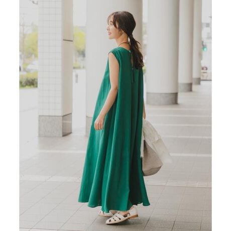 ノースリーブデザインのため、一枚ではもちろん羽織りとのレイヤードもしやすい仕上がり。