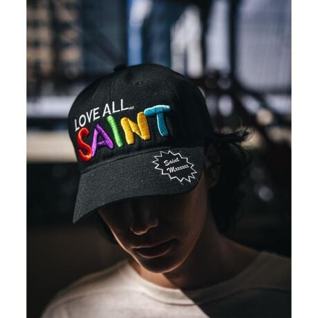 フロントのカラフルな刺繍ロゴが特徴的なキャップになります。フロントに《LOVE ALL SAINT》のメッセージを刺繍で入れ、スタイリングのアクセントとして取り入れやすいデザイン。バックにはアジャスターが付いており、サイズ調整が可能。幅広いスタイリングを楽しむことが出来ます。