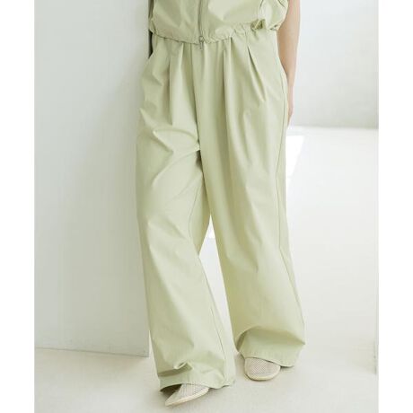 【ベルトレスで叶える、極限の美。全ゴム仕様のタックが描く、スマートなワイドシルエット】