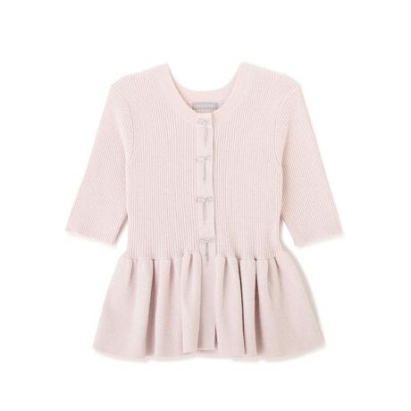 ラメ感のあるモール糸を使用した、華やかな半袖ペプラムニット。ウエストから広がるペプラムシルエットが女性らしさを演出します。ビジュー調リボンがさりげないアクセントになり、フェミニンスタイルにぴったり。スカートはもちろん、デニム合わせも大人可愛いバランスで着られます。※撮影時照明の関係により、色味が違って見える場合がございます。またパソコン・スマートフォンなどの環境により、若干製品と画像のカラーが異なる場合もございます。予めご了承ください。商品の色味は、商品単品画像をご参照下さい。※商品画像はサンプルのため、色味やサイズ等の仕様に変更がある場合がございますので、予めご了承ください。