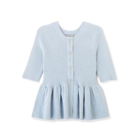 ラメ感のあるモール糸を使用した、華やかな半袖ペプラムニット。ウエストから広がるペプラムシルエットが女性らしさを演出します。ビジュー調リボンがさりげないアクセントになり、フェミニンスタイルにぴったり。スカートはもちろん、デニム合わせも大人可愛いバランスで着られます。※撮影時照明の関係により、色味が違って見える場合がございます。またパソコン・スマートフォンなどの環境により、若干製品と画像のカラーが異なる場合もございます。予めご了承ください。商品の色味は、商品単品画像をご参照下さい。※商品画像はサンプルのため、色味やサイズ等の仕様に変更がある場合がございますので、予めご了承ください。