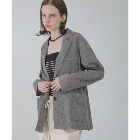 程よいシアー感とリネン混の表情がある素材の組み合わせが大人な印象のテーラードジャケット。