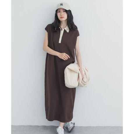 配色ポロ衿が映える、ニットワンピース