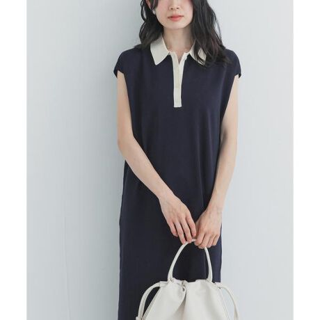 配色ポロ衿が映える、ニットワンピース