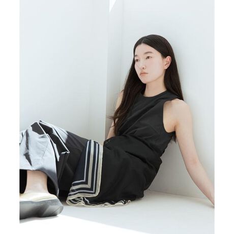 ・肩のラインを美しく魅せる、ソフトなアメリカンスリーブ。今季らしいモードな空気感と、露出しすぎない安心感を両立させました