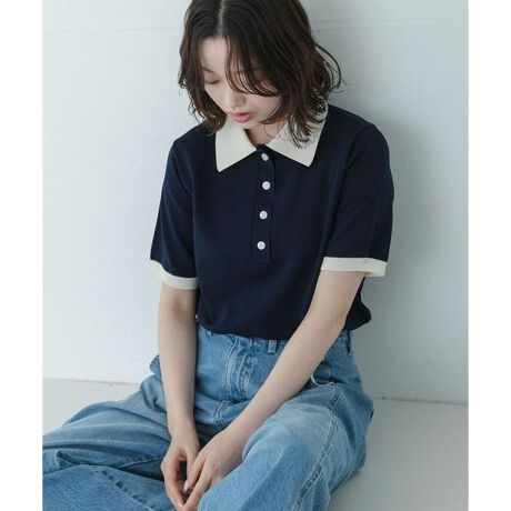 シンプルながら配色襟がアクセントのポロニット
