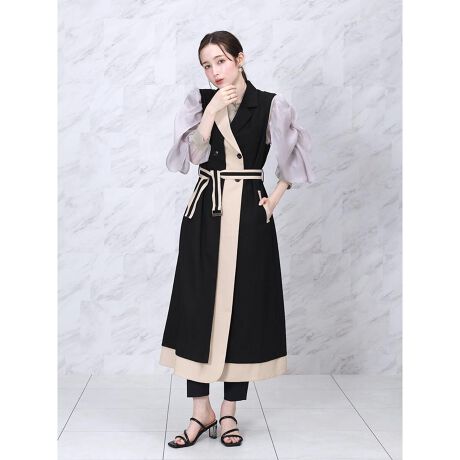 印象的なカラーコントラストが、モダンな女性らしさを引き立てるロングジレ。