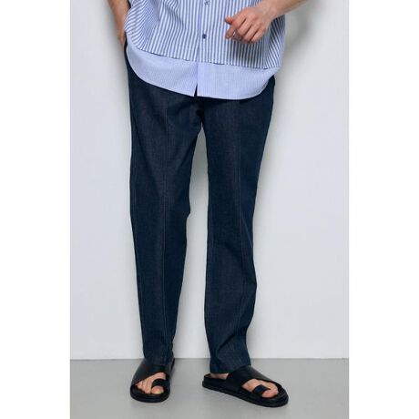 ■COOL MAX デニムスラックス■ポイントデニム見えのスラックスシルエットで、カジュアルときれいめを両立する万能ボトム。■ディテールシンプルなフロントと程よいテーパードで脚をすっきり見せるモダンなライン。オンオフ問わず使いやすいデザイン。暑い時期でも快適にはいていただけます。■スタイリング【カジュアル】白T+スニーカーでラフに。ロールアップで軽さを出すと夏らしい印象に。【スマートカジュアル】シャツ+レザースニーカーやローファーで、オフィスカジュアルにもおすすめ。【レイヤード】薄手ニットやジャケットとも相性良く、素材感のコントラストをつけると洗練された印象に仕上がります。【アウター】コーチジャケットや軽めのブルゾンでスポーティに、トレンチで上品にまとめるのもおすすめです。■生地COOLMAXを使用した、吸湿・速乾性に優れた機能素材。汗や水分を素早く生地表面へ移動させ、蒸発を促進することでドライな着用感を保ちます。繊維断面や糸構造により空気の流れを促し、涼感を感じやすいのも特徴です。ポリエステルベースのため軽量で、洗濯や着用による劣化が比較的少ないのもポイント。シワになりにくく形崩れしにくい素材で、ポリウレタン混により伸縮性があり、快適な穿き心地を実現しています。透け感:なし裏 地:なし伸縮性:あり光沢感:なし[注意事項]※画像の商品はサンプルです。実際の商品と仕様、加工が若干異なる場合があります。※画像の商品は光の照射や角度、お使いのモニター環境により、実物と色味が異なる場合がございます。※着用、お取り扱いの際は、アテンションタグをご確認ください。