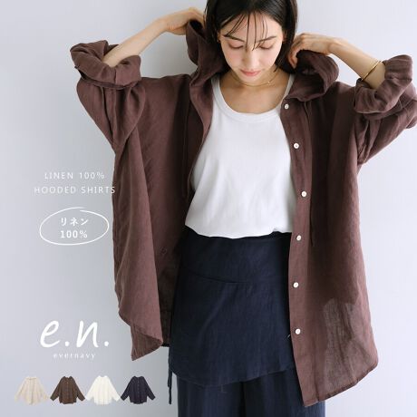 リネン フーディー シャツ evernavy エバーネイビー