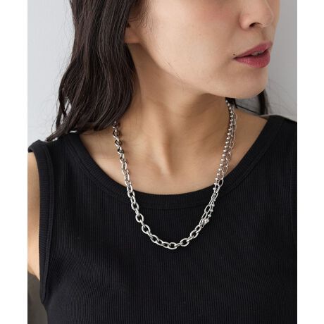 一つでレイヤードが完成する、存在感のあるミックスチェーンネックレス。ステンレス素材を使用し、変色しにくくお手入れも簡単。