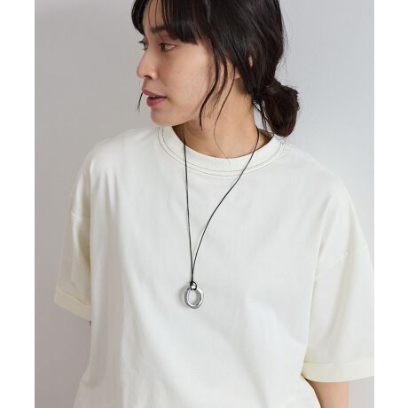 短めのネックレスとのレイヤードもバランスよく決まり、奥行きのあるスタイリングが完成します。