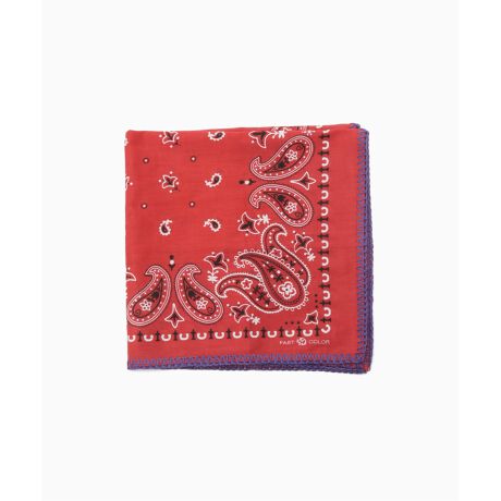 スクエア型のバンダナ全面に、伝統的なペイズリー柄や小紋柄を配置し、ブランドのルーツであるアメリカンバンダナ文化を感じさせるデザインに仕上げられています。