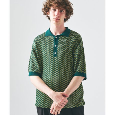 ジャカード編みで表現した柄が特徴のニットポロシャツ。