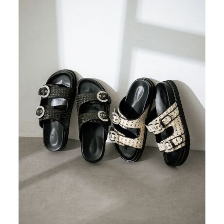 ■デザイン・素材・素材感のある雑材シートを使用したサンダル。