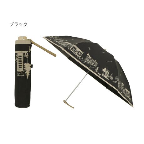 【日本製】晴雨兼用折りたたみ日傘 街並み柄 単色 1級遮光 遮熱 UV 軽量 フワクール