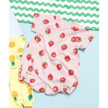 [型番:V333926]apres les cours(アプレレクール)のカバーオール・ロンパース「フルーツ柄ひんやりロンパス」は、やさしいニュアンスのナチュラルなデザイン。ベビーギフトや出産祝いの主役にも♪#apreslescours【サイズ情報】70:身丈43 身幅25 裄丈18 袖口幅10.5 前股上37.5 腰幅34 足口幅1080:身丈45.5 身幅26 裄丈19.5 袖口幅11 前股上39.5 腰幅35.6 足口幅10.5