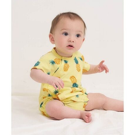 [型番:V333926]apres les cours(アプレレクール)のカバーオール・ロンパース「フルーツ柄ひんやりロンパス」は、やさしいニュアンスのナチュラルなデザイン。ベビーギフトや出産祝いの主役にも♪#apreslescours【サイズ情報】70:身丈43 身幅25 裄丈18 袖口幅10.5 前股上37.5 腰幅34 足口幅1080:身丈45.5 身幅26 裄丈19.5 袖口幅11 前股上39.5 腰幅35.6 足口幅10.5
