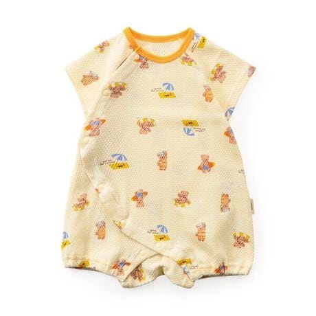 apres les cours(アプレレクール)のカバーオール・ロンパース「ぽこぽこ総柄ロンパス」は、やさしいニュアンスのナチュラルなデザイン。ベビーギフトや出産祝いの主役にも♪