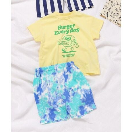100:身丈40 身幅37 肩幅35 袖丈7.5 袖口幅13.5 ウエスト幅22 前股上21 股下11 足口幅17 腰幅36