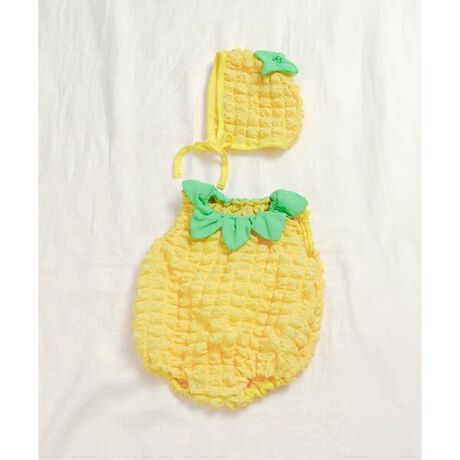 apres les cours(アプレレクール)のカバーオール・ロンパース「フルーツなりきりボディースーツ&ボンネットセット」は、やさしいニュアンスのナチュラルなデザイン。ベビーギフトや出産祝いの主役にも♪