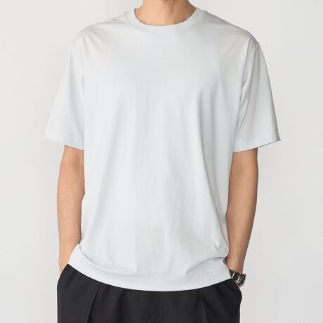 シルエット・デザイン共にシンプルなクルーネックTシャツ。